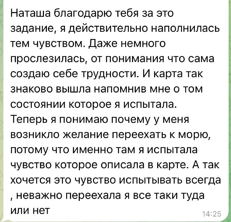 Я сама создаю себе трудности... И теперь понимаю, что желание уехать к морю — это на самом деле стремление снова почувствовать то состояние, в котором мне было по-настоящему хорошо. И, возможно, это чувство можно вернуть — не уезжая вовсе.