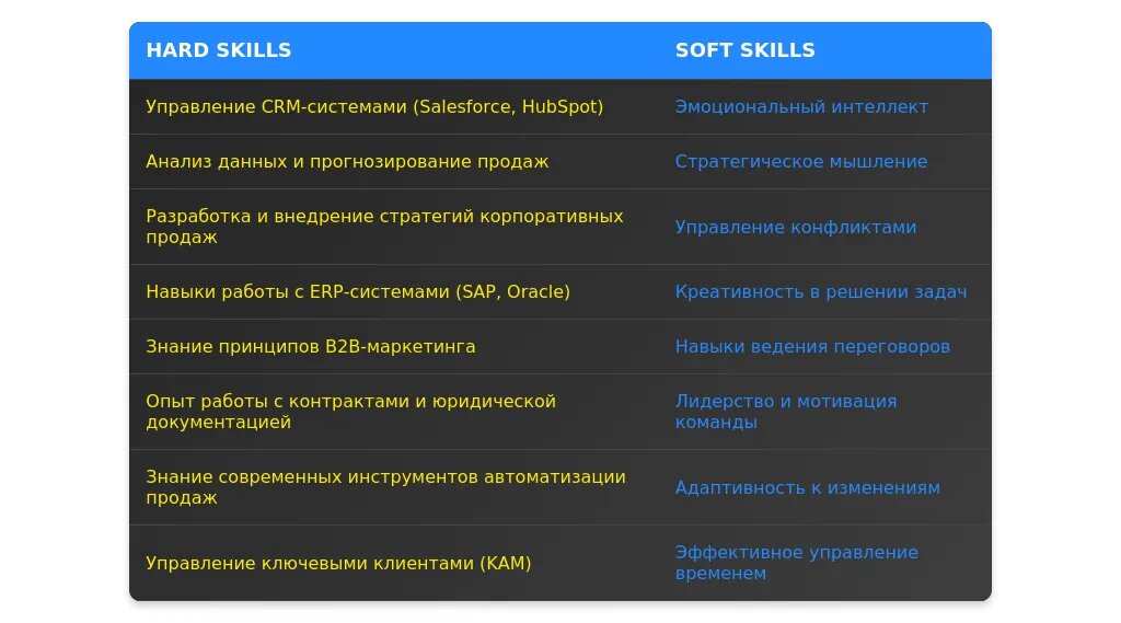 "Навыки: Управление корпоративными продажами, работа с CRM (Salesforce), ведение переговоров."