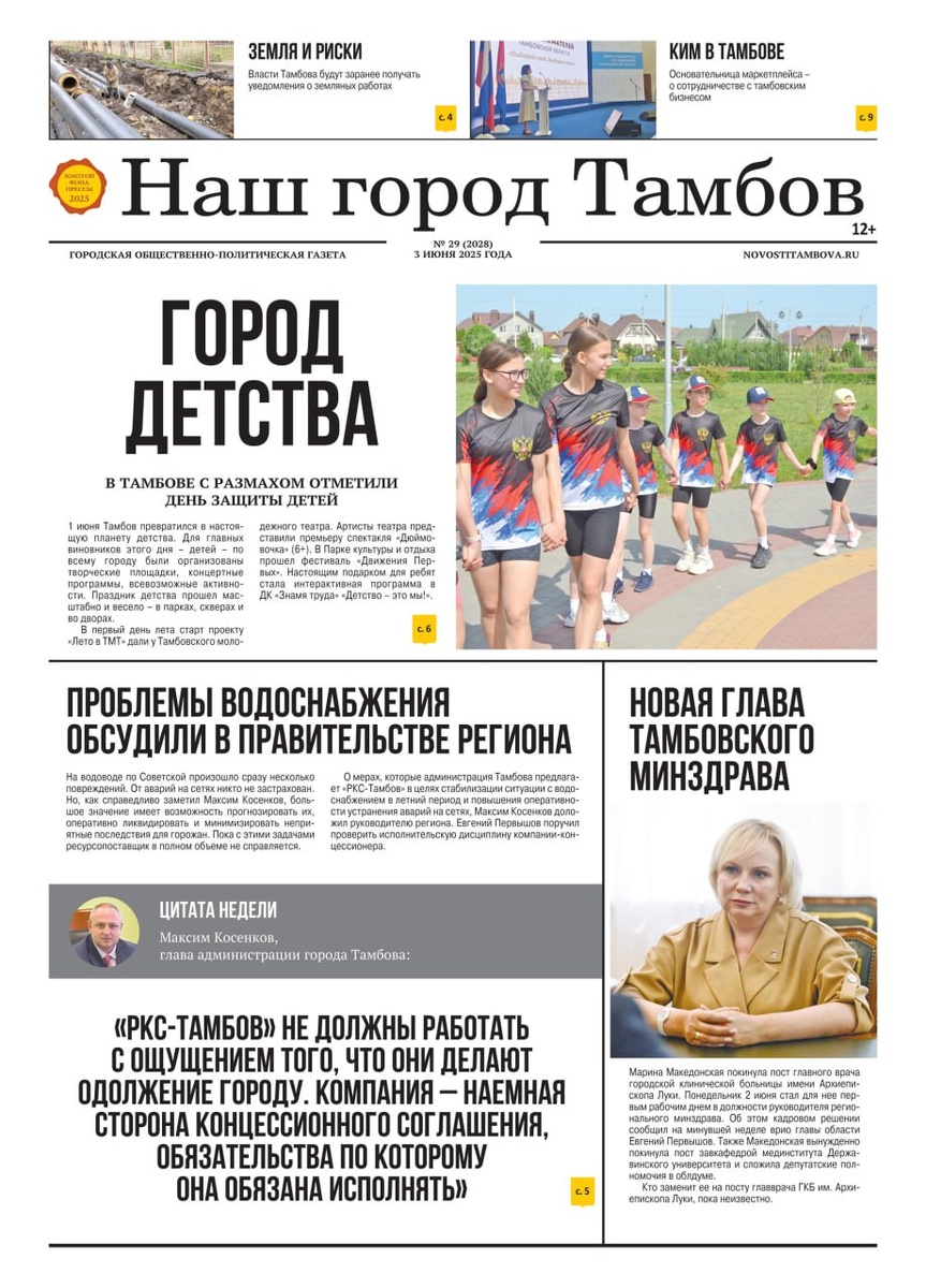 Друзья, выходит новый номер нашей газеты. Читайте в выпуске: 💧Максим Косенков озвучил врио главы области меры для решения проблем с водоснабжением в Тамбове 👩🦱Марина Македонская приступила к выполнению обязанностей министра здравоохранения региона 🌳Парк «Ласки» строят с опережением графика 🛠На западе Тамбова заменят почти полкилометра теплосетей ✅Депутаты гордумы утвердили кандидатуры, которые будут удостоены муниципальных наград 🇷🇺Ветеран боевых действий из Тамбова – о службе в 9-й роте, создании «Вепря» и уроках спецназа 👫В Тамбове с размахом отметили День защиты детей 🎭В Тамбовском молодежном театре прошла премьера семейного спектакля «Дюймовочка» 🚣♂️«Державинская регата – 2025» глазами корреспондента газеты Эти и другие материалы по наиболее актуальным темам вы найдете на страницах газеты «Наш город Тамбов». Ищите в киосках города, читайте на сайте novostitambova.ru и ТГ-канале.