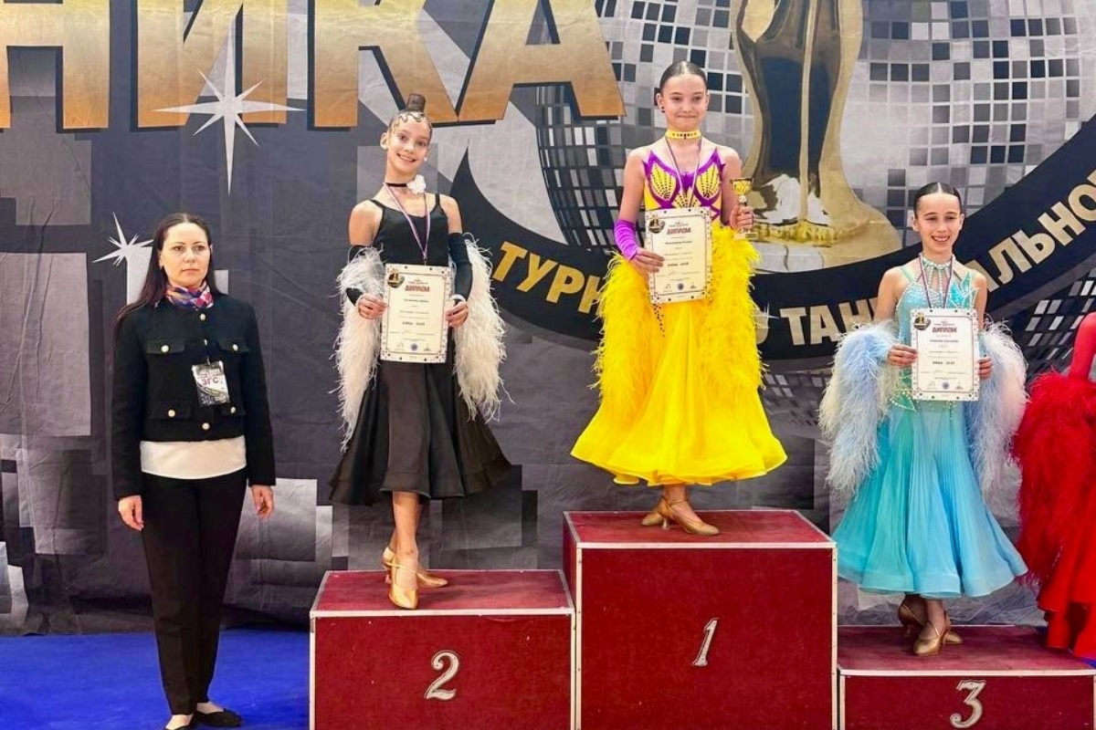 Всего завоевано шесть медалей, в том числе четыре золота, серебро и бронза. 31 мая в Красногорске состоялся российский турнир по танцевальному спорту «Ника-2025». На паркете УСА «Аквариум» МВЦ «Крокус Экспо» свое мастерство в исполнении европейских и латиноамериканских танцев продемонстрировали около 1600 дуэтов и солистов разного возраста и класса мастерства из 43 регионов. Тверскую область представляли воспитанники шести клубов регионального центра. По итогам соревнований наши земляки шесть раз поднялись на пьедестал почета. Рекордсменкой «Ники-2025» среди тверичан по количеству наград стала солистка Диана Лесникова (на снимке). Воспитанница клуба «Олимп» собрала коллекцию из четырех медалей, в том числе двух золотых, серебряной и бронзовой. Диана оформила победный дубль по Латине в категориях «Юниоры-1» до В-класса и «Юниоры-2+1» до С-класса. По Стандарту она заняла второе место в категории «Юниоры-1» до В-класса и третье в «Юниорах-2+1» до С-класса. Высшую ступень пьедестала почета