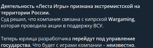 У меня лежат разные наброски, и я пока запланировал перерыв, но тут я молчать не буду. Вот такая вот информация проступила, и как бы это серьезное заявление, где мало того, что под угрозами, мягко говоря самые популярные игры у нас в стране, кучу рабочих мест и много голодных ртов у непродажных ребят. Почему же так получилось? А вот точно не знаю, леста кстати сразу пошла с козырей, я вставлю кусочек. И они реально делали это не ради хайпа, как те же ВГ для одной террористической организации, так как реально никто про это толком и не знал, хотя многие догадывались по внутриигровым ивентам, отсылкам и леста это подтверждает. Тут я максимально поддерживаю компанию, так как массовая благотворительность напоминает просто хайп на щепетильной теме, как например делают личности, одна из которых на картинке ниже. И вот вам не кажется, что леста, которая прям топит за нашу культуру, кучу ивентов связанных с государственными праздниками и непубличной поддержки наших бойцов сами знаете где. И