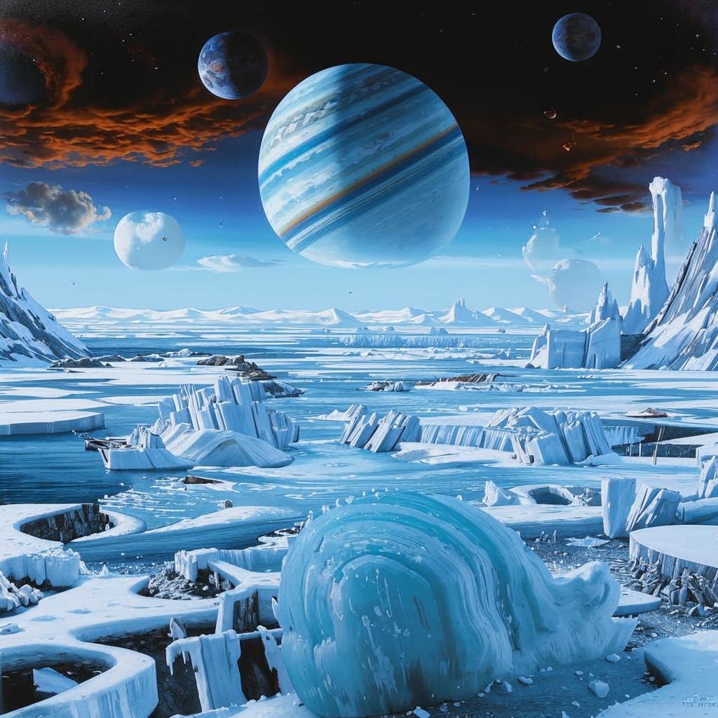 Поверхность Европы — это бесконечная головоломка. Ледяные плиты размером с город плавают на жидкой мантии, сталкиваясь и образуя причудливые узоры. Некоторые участки напоминают земные паковые льды, другие — застывшие в движении волны.