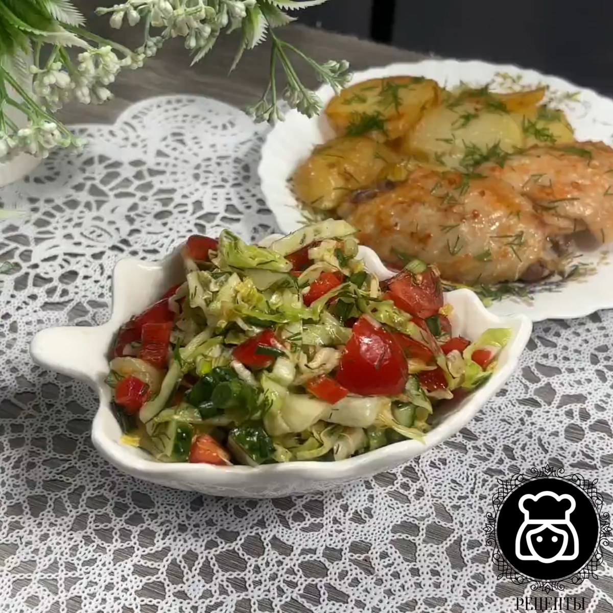 Во-первых, молодая капуста богата витаминами и минералами, которые поддержат ваш иммунитет. Во-вторых, помидоры и огурцы придадут блюду легкость и свежесть. А с зеленью вы получите невероятное удовольствие от аромата! 😋 🍽️ С чем подавать?
