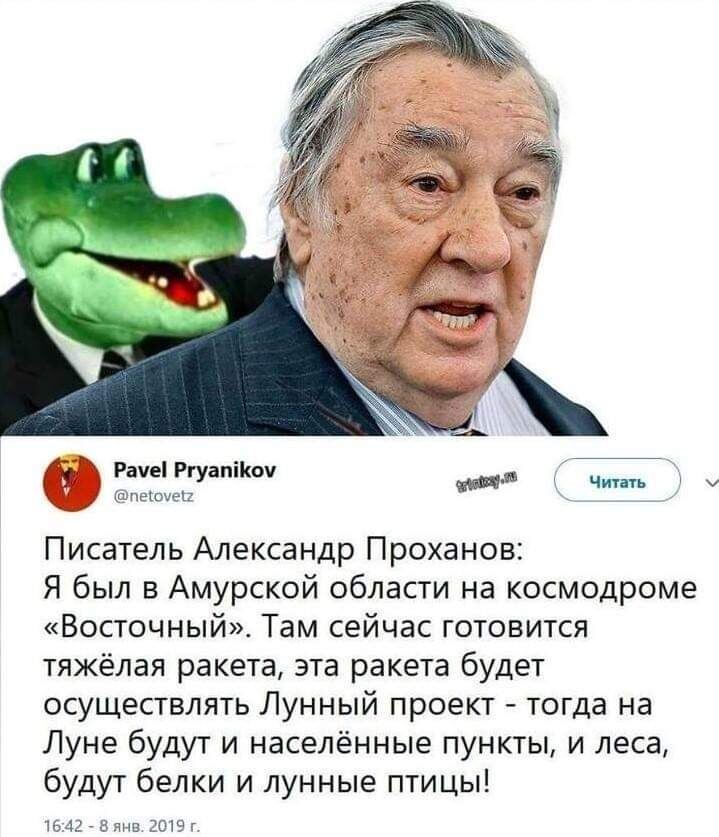 А в 2014 Проханов, как и более молодой пишущий его собрат по оппозиции З. Прилепин, решили исправиться, и перейти на официальную сторону Силы. Переход оказался и своевременным и успешным - и вот уже основанный Прохановым в 2012 Изборский клуб, разрабатывает философию русского будущего, и летят над полями патриотические стерхи, осеняя своими крылами разгоряченные лбы....