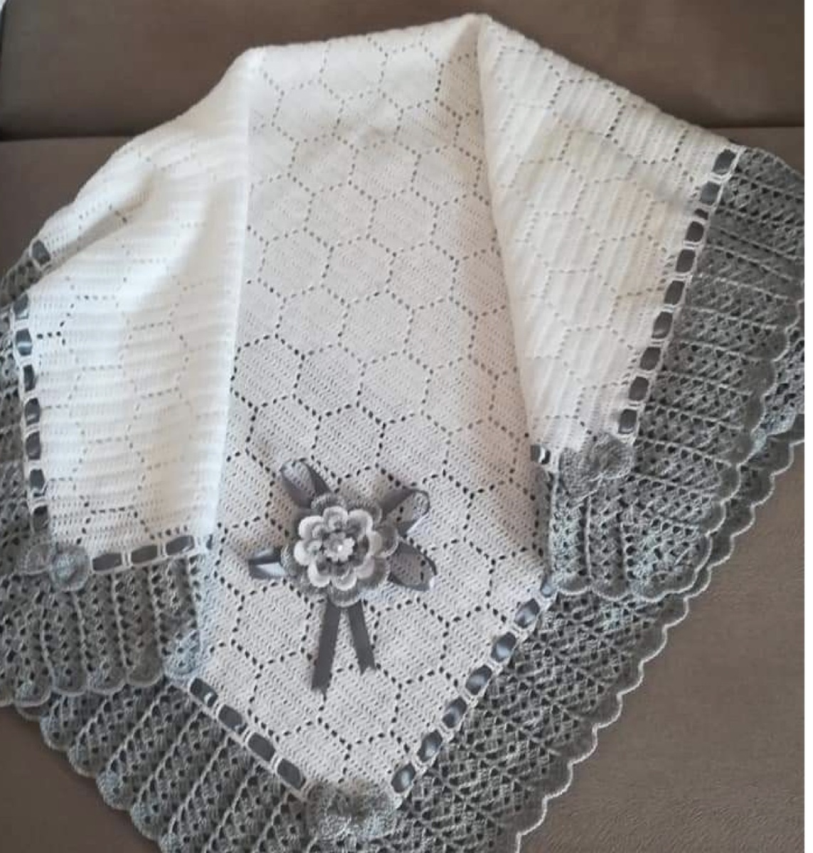 Серебряный Топ - вяжется отдельные узорные квадраты , которые затем соединяют . После этого все края обвязывают еще и узором для планок