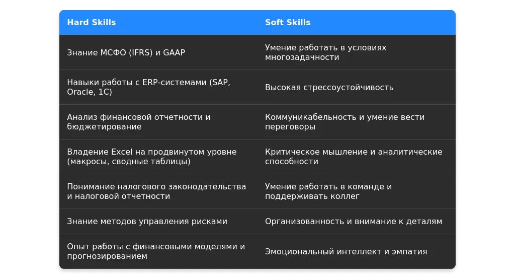 При анализе вакансии важно выделить ключевые требования, разделив их на обязательные и желательные. Обязательные требования обычно включают опыт работы, образование и профессиональные навыки, такие как знание программного обеспечения (например, Excel, 1С) или стандартов финансовой отчетности (МСФО, GAAP). Желательные требования могут включать дополнительные компетенции, такие как знание иностранных языков или опыт работы в международных компаниях.