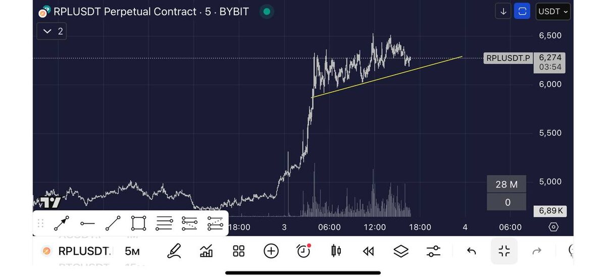 #RPLUSDT Резкий всплеск объемов повлек за собой резкий взлет цены. Сейчас монета наторговывает наклонный уровень, который в дальнейшем можно рассмотреть в пробой.