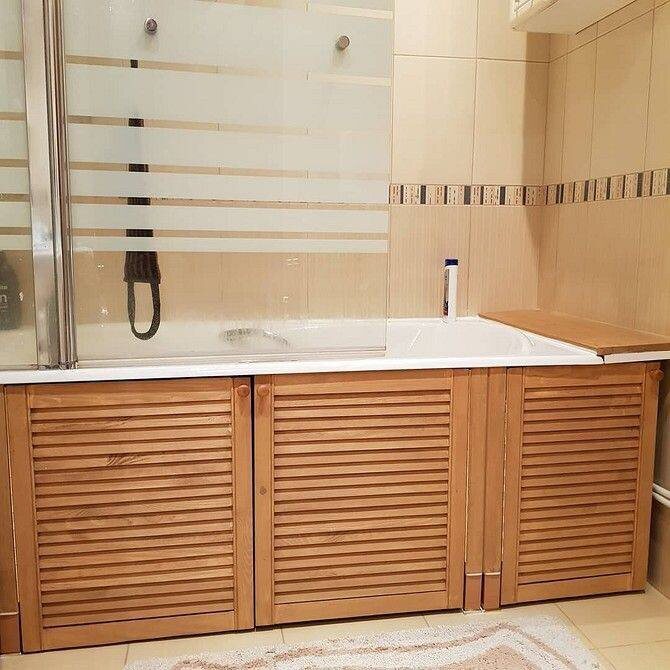Это самый простой и стильный способ сделать экран, как с картинки Pinterest) Поехали... Как сделать экран под ванну за 5.000₽? Что нужно сделатт: 1. Подготовка каркаса - Распилить бруски (3 шт.) и покрыть грунтом от плесени. (ниже есть артикулы на все материалы) - Выбрать фисташковый цвет (Dulux 20GY 46/067) — выглядит очень свежо (в видеоинструкции, которая есть внизу можно посмотреть весь процесс и финальный вариант) - Покрасить дерево матовой акриловой эмалью Luxens . 2. Сборка и крепление - Собрать каркас, использовать гибридный герметик Axton , чтобы не сверлить стены. - Усилить конструкцию металлическими уголками (12 шт.). 3. Дверцы и финальные штрихи - Одну дверцу поставить на петли (2 шт.) , остальные — на магнитные защелки. - Добавить декоративную планку с выемкой под ноги — и красиво, и удобно! Где взять полный список материалов и видеоинструкцию? 📌 Все артикулы, цены и детали процесса — в Telegram-канале о дизайне 🔗 Экран под ванну своими руками за 5.000₽ 🫨🔥 Почему этот