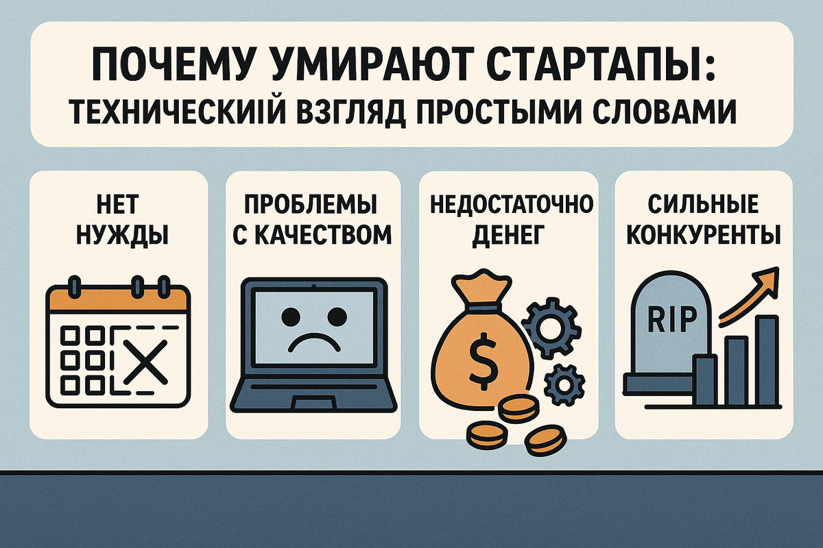 Каждый год миллионы людей по всему миру пытаются запустить свой стартап. У кого-то идея кажется прорывной, кто-то вдохновляется успехом других, а кто-то просто устал работать «на дядю». Но статистика безжалостна: 90% стартапов умирают в первые два года. Причем часто это происходит не из-за идеи, не из-за конкурентов и не из-за отсутствия инвестиций. Во многих случаях виновата именно технология — или, если быть точнее, технические ошибки и решения, которые изначально казались правильными.