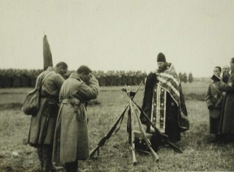 Даже во время братоубийственной мясорубки Гражданской войны русские солдаты по ту и другую сторону фронтов продолжали молиться Богу. В Белой армии это делали открыто, и молебен перед полком служил священник. Как написал в мемуарах «Дроздовцы в огне» генерал-майор Антон Васильевич Туртул: «может быть, молилась тогда с нами в смертной тьме вся распятая Россия».