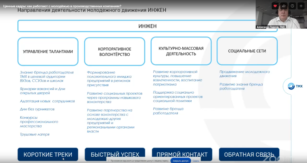 ⚡ Короткие треки + быстрый успех + прямой контакт + обратная связь — формула эффективной работе с молодёжью. Все детали — в эфире сегодняшнего Открытого Лектория. ➡ БЕСПЛАТНО ПОСМОТРЕТЬ ЗАПИСЬ можно до конца дня пятницы, далее она уйдёт в платный Магазин полезностей На примере «Трансмашхолдинга» мы разобрали: ▪ принципы построения работы с молодёжным движением в компании, ▪ изменения, которые внесли в «молодёжку» за последние два года, ▪ структуру управления движением, ▪ направления деятельности, ▪ оценку вклада активистов (в баллах) за каждое мероприятие. Смотрите эфир и перенимайте опыт коллег. #открытыйлекторий #клубвк #прямойэфир #брендработодателя #корпоративнаякультура