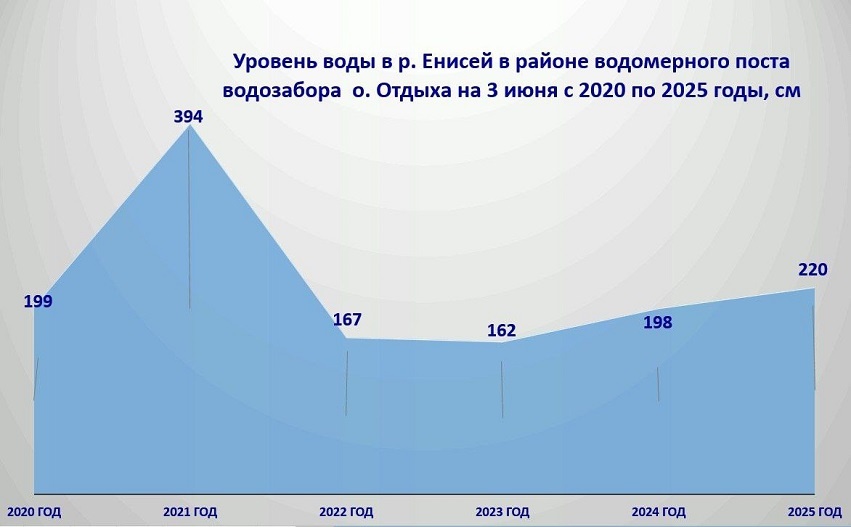 Уровень воды в Енисее в районе водомерного поста на острове Отдыха впервые за три года пришёл в норму. По данным на утро 3 июня, он составил 220 сантиметров, рассказали в «Краскоме». На водохранилище Красноярской ГЭС уровень воды на четыре метра выше многолетних значений. Напомним, маловодье на Енисее отмечалось с лета 2020 года. В 2023 году уровень воды опустился до 162 сантиметров — такого не было ни разу за всю историю наблюдений. На подаче холодной воды в город маловодье не отразилось. — С учётом прогноза синоптиков о том, что июньский приток воды в Красноярское водохранилище ожидается в пределах нормы, Енисейское бассейновое водное управление установило для Красноярской ГЭС средний пропуск воды через плотину гидроэлектростанции — 3400 кубометров в секунду. Отметили в «Краскоме». Из-за этого уровень воды в Енисее может ещё немного подняться — до 240 см. фото: t.me/kraskom