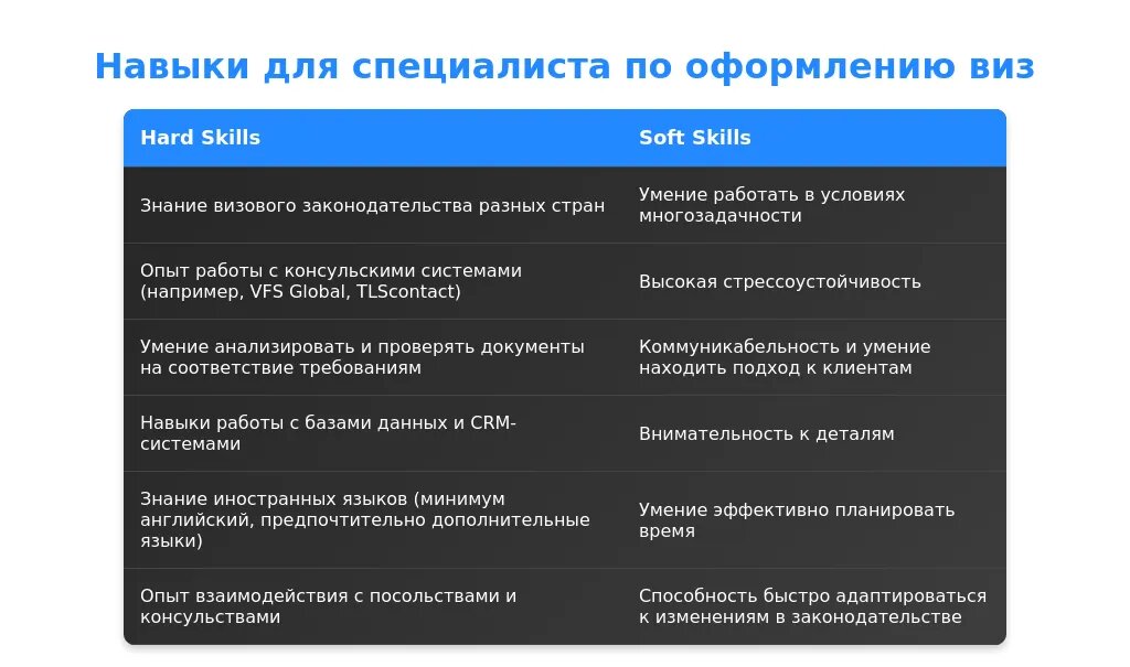 Анализ вакансии для специалиста по оформлению виз