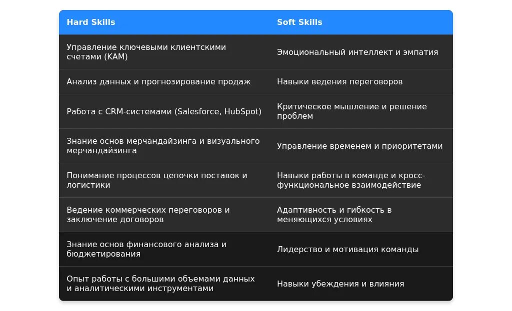 Анализ требований вакансии для профессии "менеджер по работе с ключевыми клиентами (розница)"