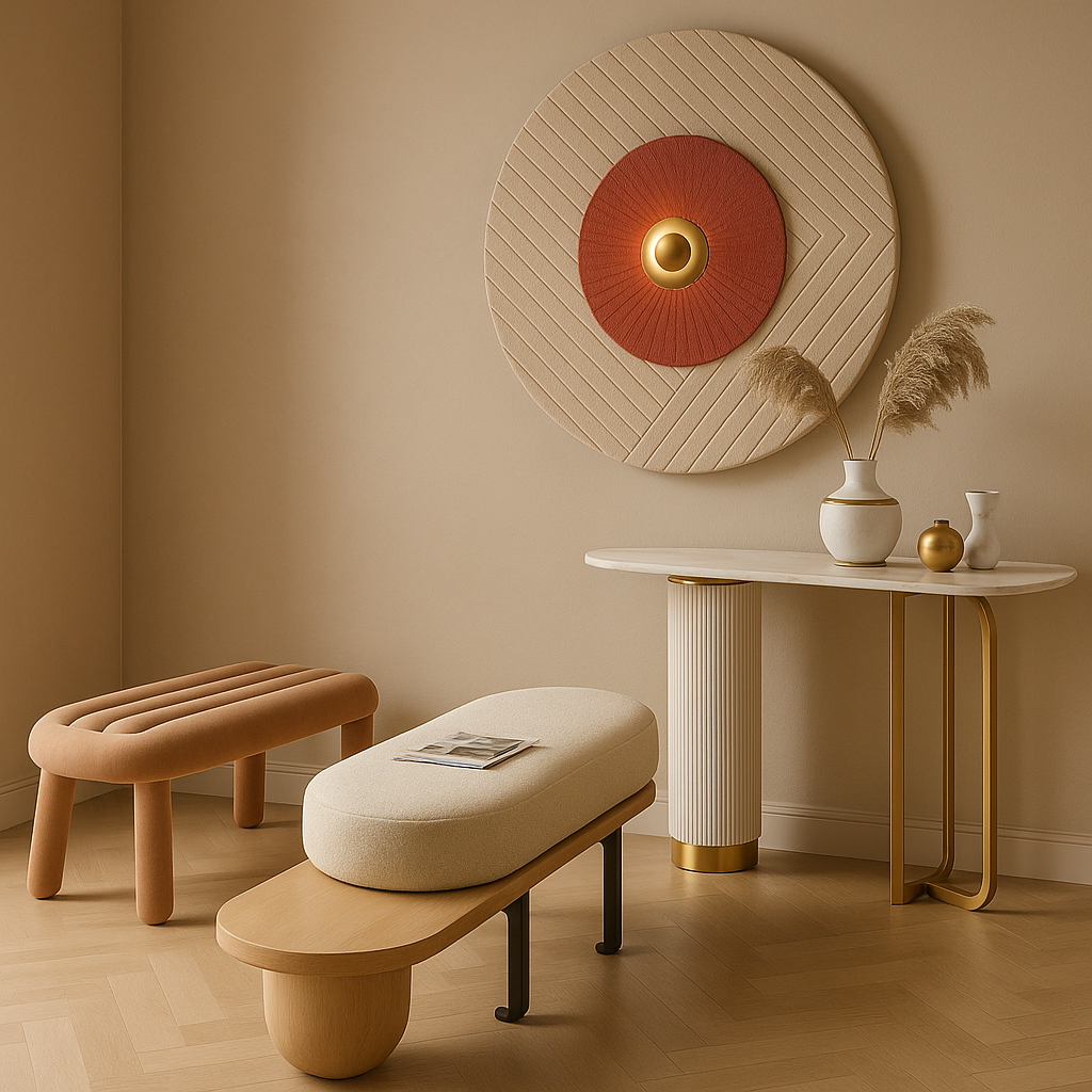 Ниже представлена уникальная подробная статья, посвящённая мебели и предметам интерьера с маркетплейса OZON, изображённым на фото. Эти товары — это не просто функциональные объекты, а настоящие арт-объекты, способные задать характер интерьеру и подчеркнуть индивидуальность пространства. Интерьер — это язык, на котором пространство говорит с нами. И язык этот бывает сдержанным, вычурным или тонко интеллектуальным. На представленных фотографиях — предметы, которые говорят мягко, но уверенно: о вкусе, актуальности и стремлении к комфорту. OZON: 1240254089 Эта пуф-скамья с округлыми, будто надутыми формами напоминает предмет из футуристического мультфильма или дизайнерской галереи. Мягкий, пудрово-бежевый оттенок и короткий ворс ткани создают визуальный эффект уюта и легкости. Где использовать: Подходит для стилей: OZON: 1979959453 Это дизайнерское решение — настоящая находка для поклонников нестандартных форм. Сочетание округлого сидения, минималистичного деревянного основания и черны