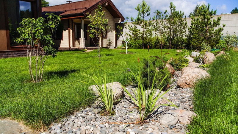 Оформление приусадебного участка с помощью природных материалов – это тренд, который не выходит из моды. Гравий и камень позволяют создавать выразительные, долговечные и неприхотливые композиции. Их использование придаёт участку ухоженный и гармоничный вид, а при правильной укладке служит многие годы без особого ухода. В ландшафтном дизайне применяют несколько основных видов каменных материалов. Гравий – это природный материал, который получают дроблением горных пород. В продаже представлен в разных фракциях: от мелкого (5-10 мм) до крупного (40-70 мм). Цветовая гамма – серая, белая, коричневая, цветные смеси. Галька – округлый камень речного или морского происхождения. Используется для декоративных отсыпок, оформления водоёмов. Щебень и отсев – более острые по форме материалы, часто применяются как основание для дорожек. Натуральный камень: плитняк (плоские плиты), булыжники, валуны. Эти элементы хорошо подходят для мощения, подпорных стенок, альпийских горок. Искусственный камень – о