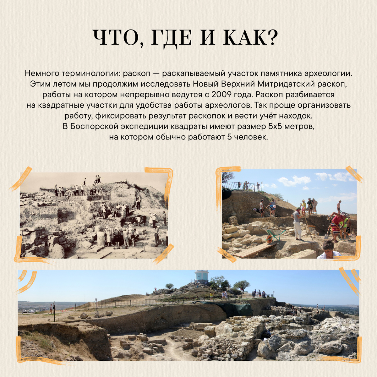 Близится дата старта Боспорской археологической экспедиции. В этом году Пушкинский музей отмечает её 80-летие. Сегодня мы расскажем немного о романтике раскопок в Пантикапее (современной Керчи), самом древнем непрерывно существующем городе на территории нашей страны. О том, что такое «тачок» и почему он важен, и специфике работы тех, без кого невозможно представить никакие археологические раскопки — землекопов.