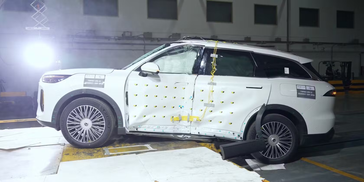 21 мая кроссовер CHERY TIGGO 9 уверенно прошёл краш-тест на боковой удар о столб при скорости 32 км/ч — по строгим требованиям протокола Euro NCAP. Результаты испытаний доказали не только высокий уровень пассивной безопасности автомобиля, но и то, насколько продуманной может быть система спасения после ДТП. CHERY вновь подтвердил своё инженерное кредо: «Безопасность — это настоящая роскошь». В отличие от фронтальных столкновений, при боковых ударах у машины почти нет зоны, способной поглощать энергию. Основная нагрузка ложится на силовые элементы дверей, центральные стойки и балки. Особенно сложно — при ударе в столб: площадь контакта минимальна, а деформация — локальная и очень агрессивная. Чтобы удержать салон неповреждённым, приходится применять особые технические решения. Кроссовер двигался боком со скоростью 32 км/ч и врезался в столб диаметром 254 мм, который пришёлся прямо в водительскую дверь — одну из самых уязвимых зон. Несмотря на это, манекены в передних сиденьях не зафикси