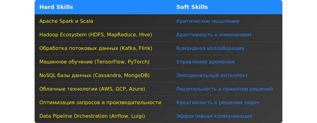 - Какие Hard и Soft Skills важны для big data developerа.