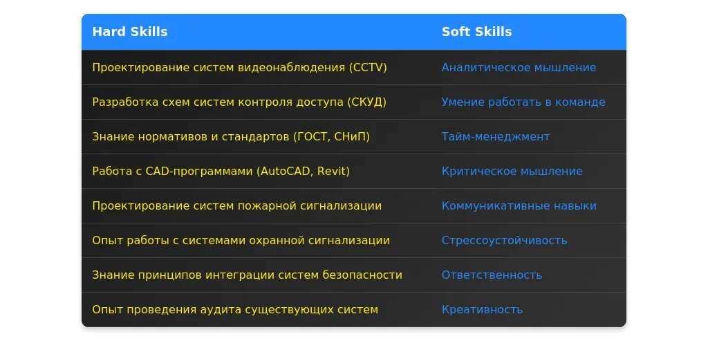 Как подтвердить soft skills: Приводите примеры из опыта работы. Например, "Успешно руководил проектом внедрения системы видеонаблюдения, что привело к снижению инцидентов на 20%."
