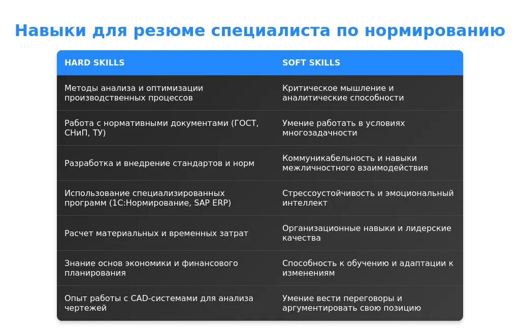 Анализ требований вакансии для специалиста по нормированию