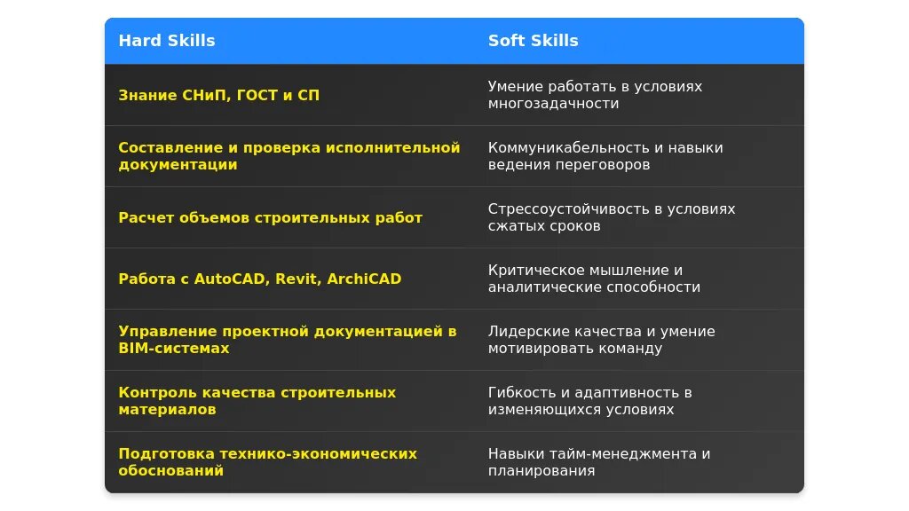 . Мы расскажем об актуальных требованиях работодателей, необходимых навыках и дадим советы по адаптации вашего резюме под конкретные вакансии. Материал будет полезен как начинающим специалистам, так и опытным инженерам-строителям ПТО, желающим улучшить свое резюме. Изучив пример, вы сможете создать резюме с помощью нашего конструктора резюме.