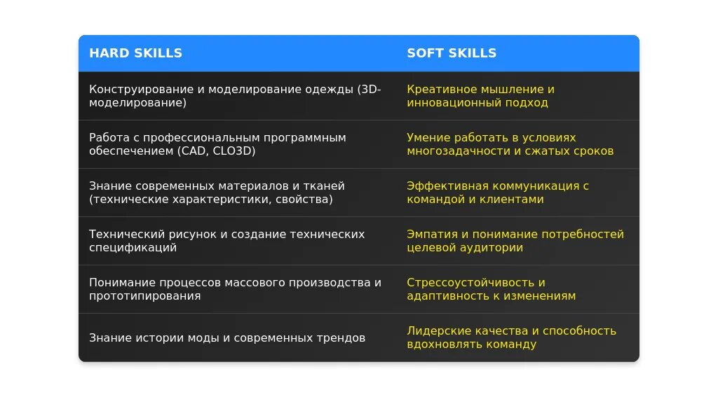 После адаптации: "Знание классических и современных техник кроя, включая 3D-моделирование".