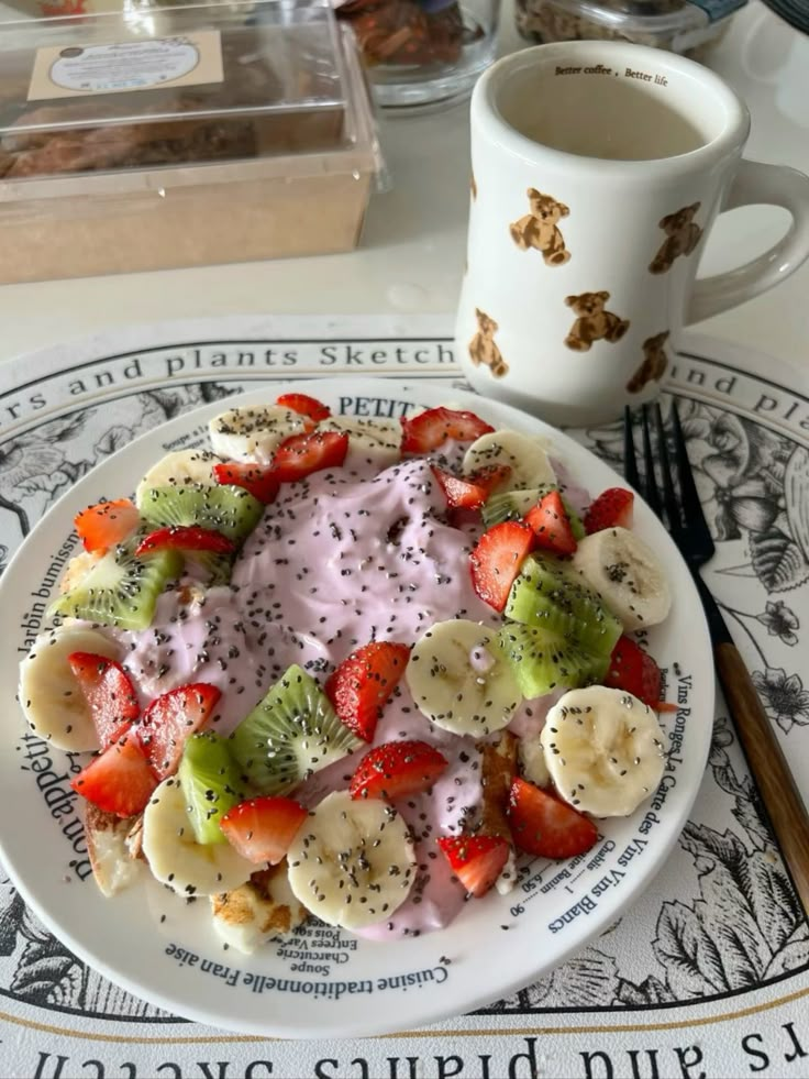 - В стакан или миску слоями выкладывайте йогурт, ягоды и гранолу.