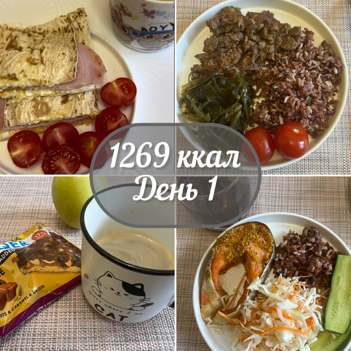 Мой канал с рецептами https://www.youtube.com/ ✅Завтрак Яйца - 2 шт с1 Сыр 15% - 25 г Ветчина - 40 г Лаваш - 25 г Масло для обжаривания - 1 г Помидоры - 60 г На масле обжариваем 2 яйца, накрываем лавашем, через минуту переворачиваем, добавляем ветчину и сыр и складываем пополам. ✅Обед Готовлю на 2 дня Печень куриная - 250 г Лук - 100 г Морковь- 25 г Соевый соус - 1 ст л Масло растит - 5 г На масле обжарить лук и морковь, промыть печень, добавить к луку и морковке, добавить любимые специи и соевый соус, оставить тушиться под крышкой на 20 минут, поделить на 2 порции К сегодняшней порции добавить Помидоры - 30 г Горчица зернистая - 10 г Смесь 4 риса - 35 г в сухом виде ✅Перекус Кофе со сливками 10 % - 20 г Протеиновое печенье - 1 шт Яблоко - 150 г ✅Ужин Стейк форели - 150 г в сыром виде Горчица зернистая - 10 г Салат капуста с морковью ( нарезка готовая ) - 50 г Смесь 4 риса - 15 г в сухом виде Огурец - 50 г Квас - 100 г