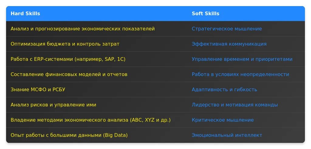 Пример адаптации навыков: Если в вакансии требуется опыт работы с SAP, добавьте: "Опыт работы с SAP ERP для автоматизации процессов бюджетирования."