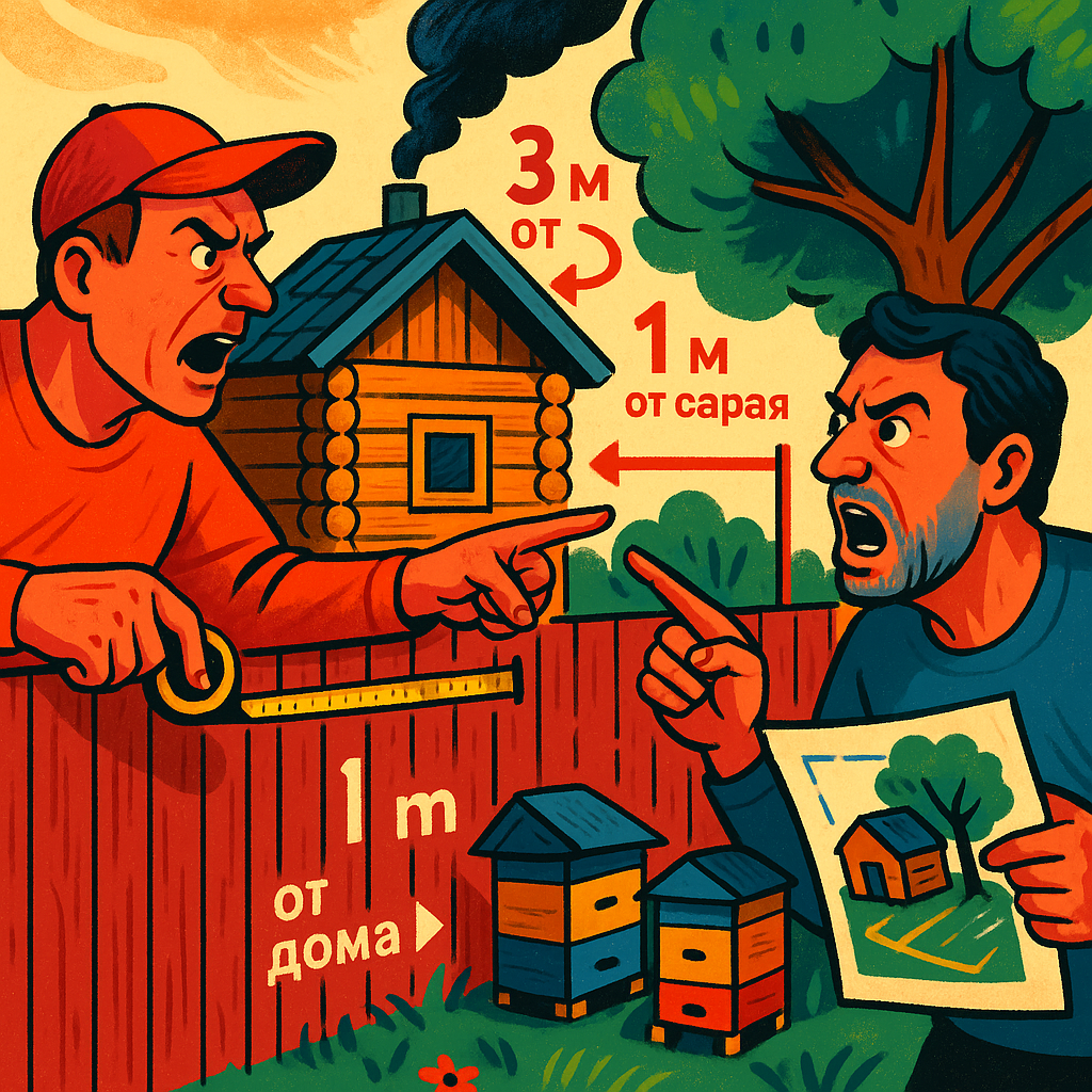 ИЛИ: Без ограничений по расстоянию, если ульи отделены от соседей глухим забором (или густым кустарником, строением) высотой не менее 2 метров.