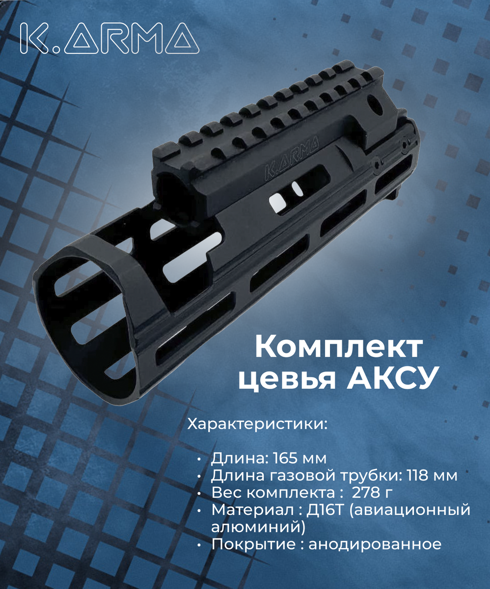 🚀 Новинка от K.Arma: комплект металлического цевья для АКС-74У (АКСУ) – обновлённая версия цевья Ars RTG, созданная на нашем собственном производстве. Свободно вывешенная конструкция обеспечивает стабильность стрельбы и эффективное охлаждение оружия. Отличная эргономика и надёжные материалы делают цевьё современным функциональным решением для индивидуальных задач стрелка. Особенности: 🔹Модернизированная версия цевья Ars RTG (собственная разработка K.Arma) 🔹Полностью совместимо с АКС-74У (АКСУ) 🔹22 паза под планки M-LOK + 10 слотов Picatinny на газовой трубке 🔹Свободно вывешенная конструкция – повышенная стабильность стрельбы и лучшее охлаждение 🔹Для установки ЛЦУ, фонарей, рукояток и других аксессуаров 🔹Материал – алюминий Д16Т с анодированным покрытием 💥 Уже в продаже! Переходите по ссылке или пишите для заказа и подробностей