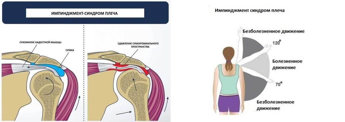 Импиджмент-синдром — это состояние, при котором происходит сдавление и повреждение сухожилий вращательной манжеты плеча между костными структурами плечевого сустава, чаще всего под акромионом. Главной причиной развития синдрома является хроническое повторяющееся раздражение сухожилий, вызванное травмами, чрезмерными нагрузками или анатомическими особенностями сустава. Часто патология развивается у спортсменов, работников с активным движением рук над головой и людей, ведущих малоподвижный образ жизни с плохой осанкой.