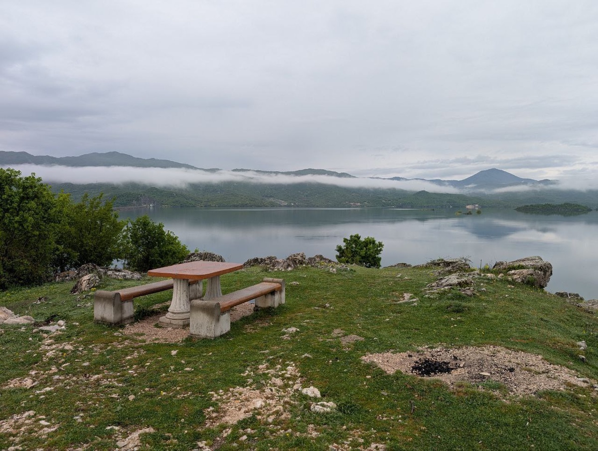 Озеро Слано. Никшич. Черногория. 26.04.2025 Спустился ещё ниже. На второй смотровой видно четче. Озеро Слано в Черногории (его название можно перевести как «Солёное озеро») имеет искусственное происхождение — оно появилось в 1950 году, когда была построена гидроэлектростанция Перучица. Находится в 6 км к западу от Никшича. Характерная особенность озера Слано — наличие большого количества островов. Протяжённость озера — 4,5 км, а его площадь составляет почти 9 км². Уровень воды зависит от времени года, он увеличивается в период дождей и таяния снегов. Когда вода прибывает особенно быстро, её потоки создают большое число красивых водопадов. Сюда любят приезжать многочисленные туристы и любители охоты и рыбалки.