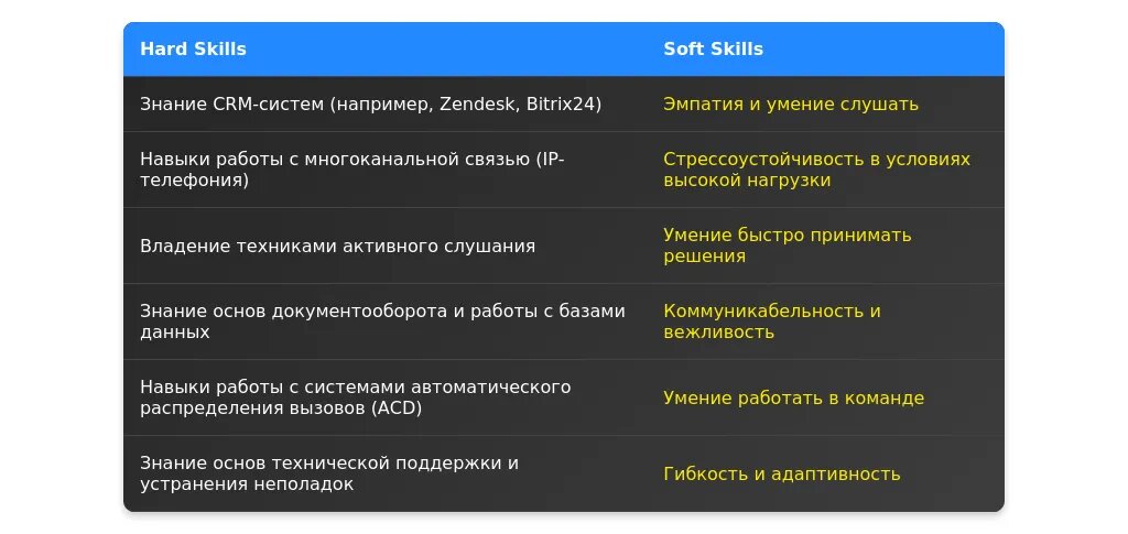 **Обязательные требования**: навыки работы с системами обработки звонков, умение работать в команде. **Скрытые требования**: коммуникабельность, так как работа предполагает общение с клиентами.