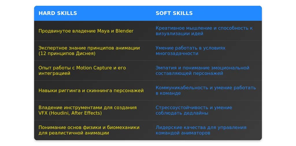 - Навыки для акцента: Основы анимации, работа с простыми инструментами, готовность к обучению.