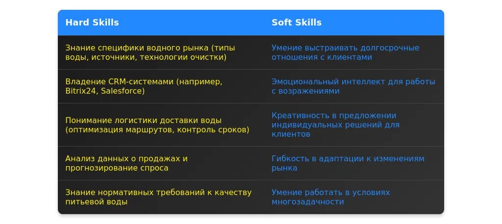 При анализе вакансии для менеджера по продажам воды важно выделить ключевые требования, которые работодатель считает обязательными. Это может быть опыт работы в продажах, знание специфики рынка воды, навыки ведения переговоров или умение работать с клиентской базой. Обязательные требования обычно выделяются в описании вакансии фразами вроде "требуется", "обязательно", "необходимо". Желательные требования часто начинаются с "желательно", "будет плюсом", "приветствуется".