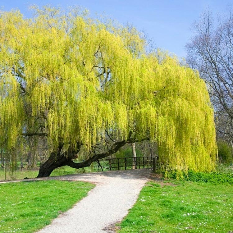 Ива Желтокорая – это могучее большое дерево, обладающее плакучей кроной. Древовидная культура обладает внушительной высотой – до 15-20 метров. Диаметр кроны столь же огромен – в среднем она также разрастается на 20 м. Растет культура быстро.