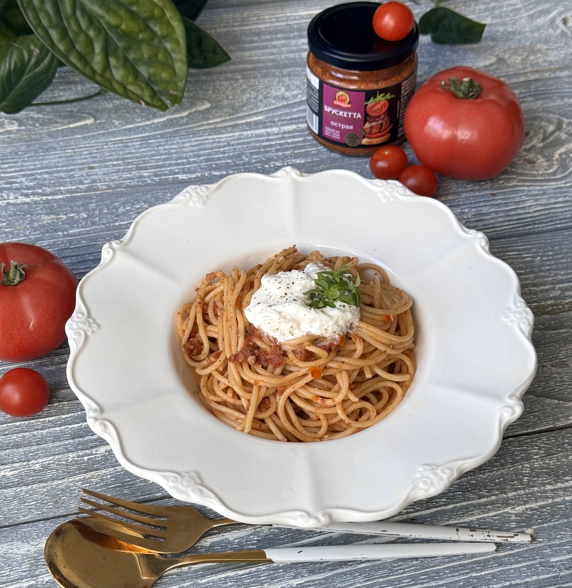 ✔️Страчателла — по вкусу✔️Закуска брускетта острая — 1 баночка ✔️Базилик свежий ✔️Паста — 300 гр
