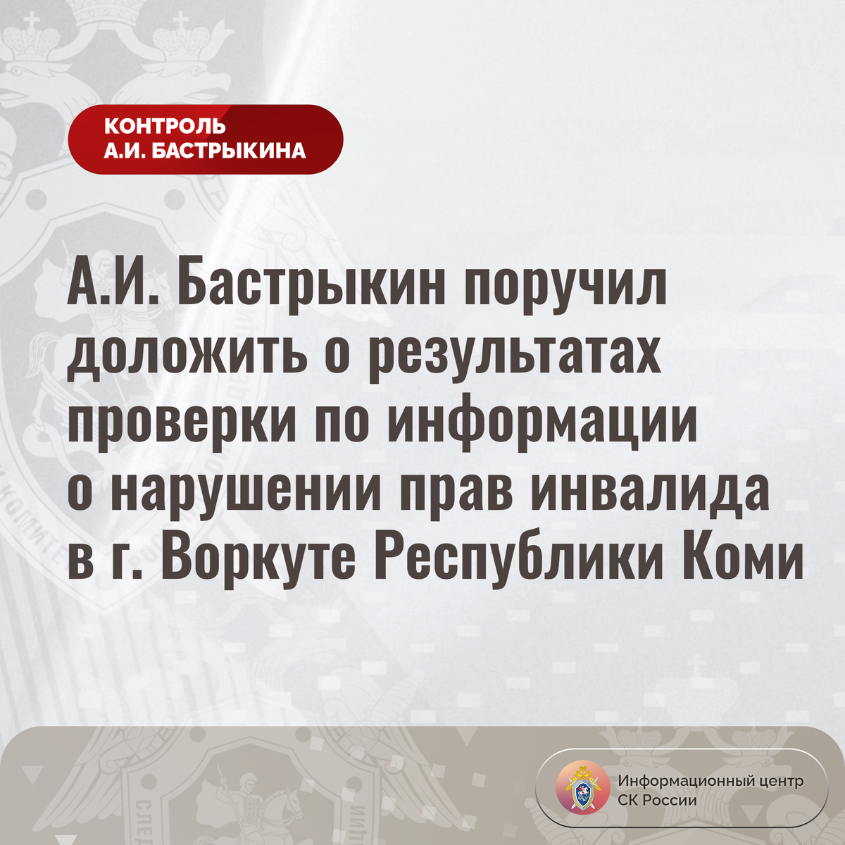 А.И. Бастрыкин поручил доложить о результатах проверки по информации о нарушении прав инвалида в г. Воркуте Республики Коми