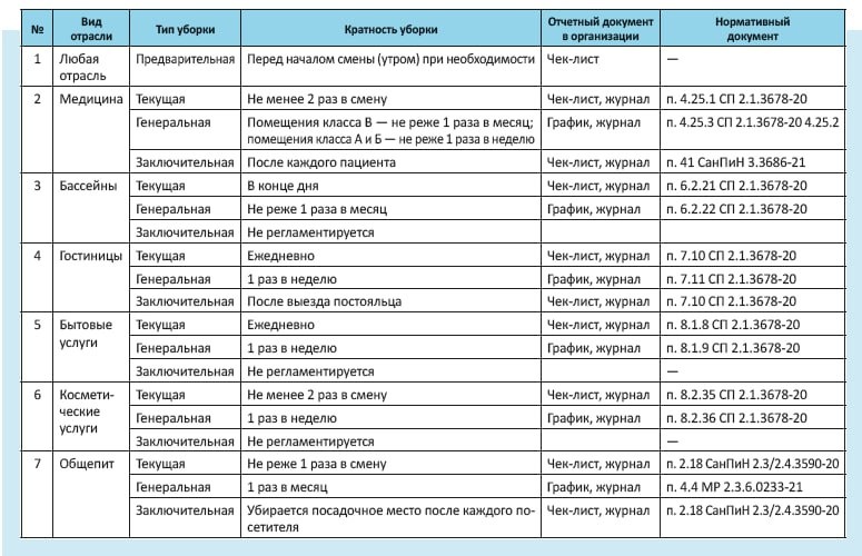 Типы уборок по отраслям: шпаргалка