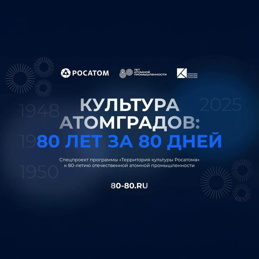 Культура атомградов: 80 лет за 80 дней К юбилею атомной промышленности под эгидой «Территории культуры Росатома» создан уникальный просветительский проект «Культура атомградов: 80 лет за 80 дней». Онлайн-платформа рассказывает о самых значимых социокультурных событиях, которые происходили в городах атомпрома с 1945 по 2025 год. Каждый день до 20 августа на сайте будет публиковаться ретроспектива событий прошедших лет в ключевых фактах, цитатах, воспоминаниях, фотографиях и исторических документах. Проект реализован во многом благодаря огромной помощи более чем сотни специалистов сферы культуры самих атомградов – руководителей департаментов, сотрудников учреждений культуры, историков, краеведов, исследователей, которые предоставили всю необходимую информацию. Погружайтесь в культурную историю атомградов, рассказывайте о проекте близким и друзьям. Пусть как можно больше людей узнают, что атомная отрасль – самая культурная отрасль промышленности нашей страны! #ТерриторияКультурыРос
