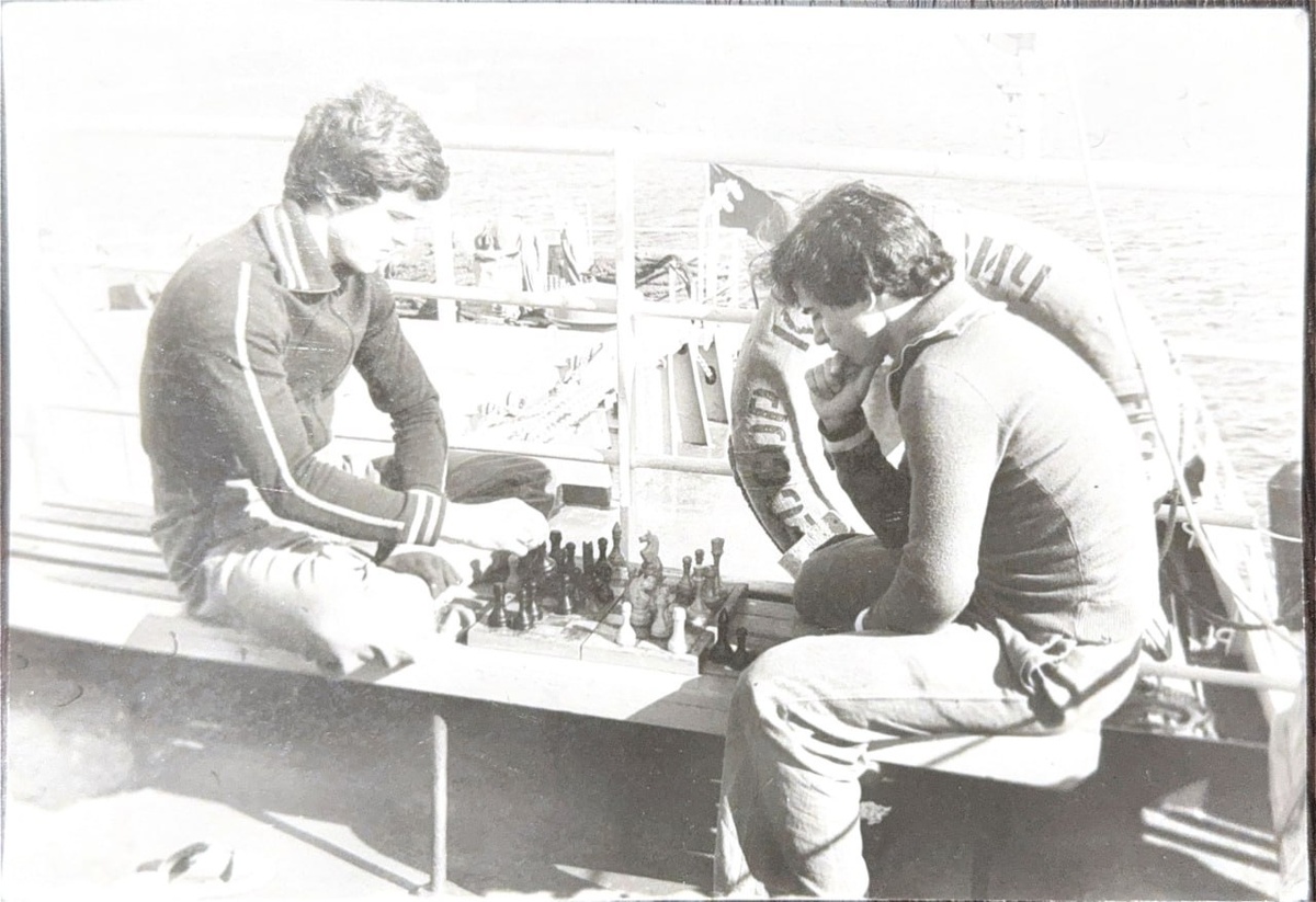 Первые откликнулись!👋 В продолжение шахматной темы🤓🤔 А вы знали, что раньше каждый офицер на корабле должен был играть в шахматы?♟ Благодаря этой игре у моряка развивалось логическое и🧠 нестандартное мышление, тренировалась память и внимание,⚠️ появлялось стратегическое видение 👀 обстановки и еще много других полезных и важных навыков.👍 А вот и фото 📸 в доказательство выше сказанного. На снимке курсант НВИМУ во время плавательной практики с пользой проводит время за шахматной доской. Благодарим 🤝 за уникальный снимок Алексея Панули, курсанта первого набора Судоводительского факультета НВИМУ 1975 года. Его личный архив отлично украсил и дополнил нашу информационную ленту.👏 #ушаковкарф #ушаковкаФЭВТиСВ #ушаковкаСМФ #ушаковкаИМТМЭиП #ушаковкаМК #ушаковкаТК #ушаковкаНШ #aumsu #поступайвгму
