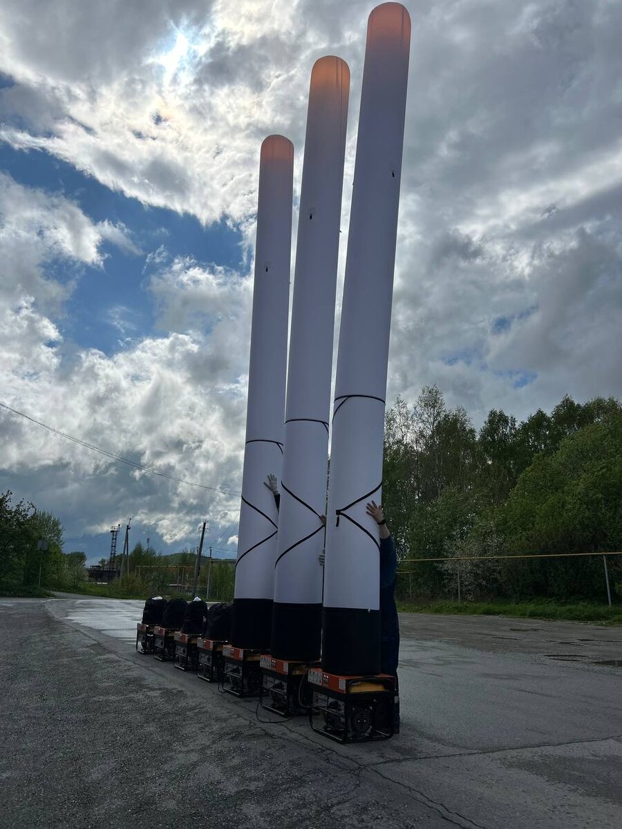 • Устойчивость к ветру: до 15 м/с без доп. креплений. А теперь по-человечески: Надувная башня — это тканевый цилиндр, внутри которого встроен мощный светильник (чаще светодиодный). Конструкция наполняется воздухом с помощью встрое