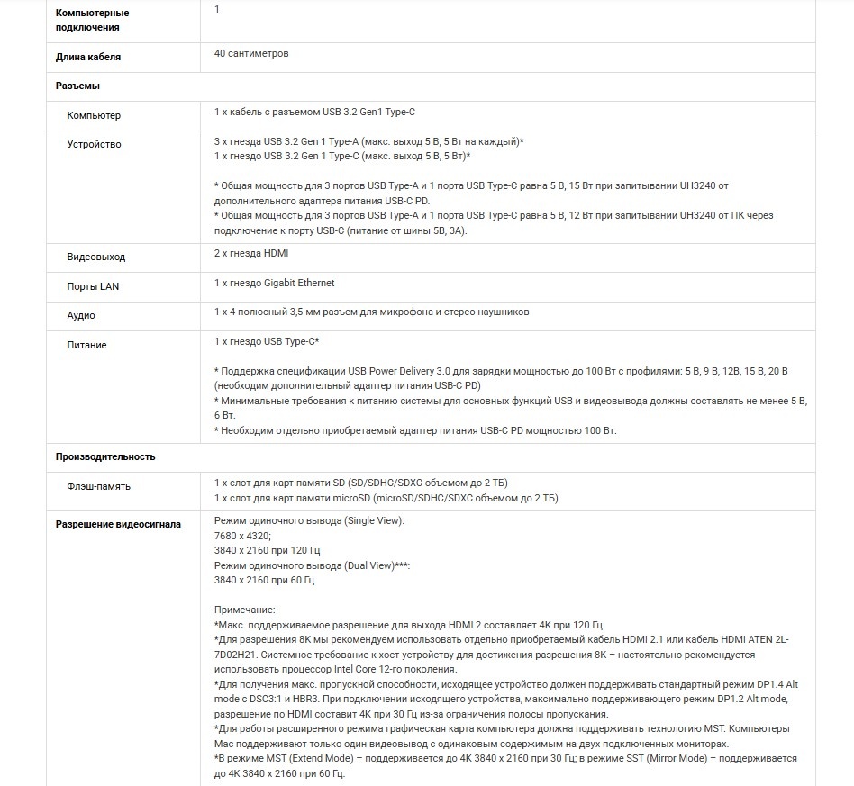 Док-станция ATEN UH3240 — это компактное и функциональное устройство, способное значительно упростить организацию рабочего места. Благодаря широкому набору портов и поддержке высокого разрешения, она превращает минимальный набор разъёмов современного ноутбука в полноценную рабочую станцию за считанные секунды.