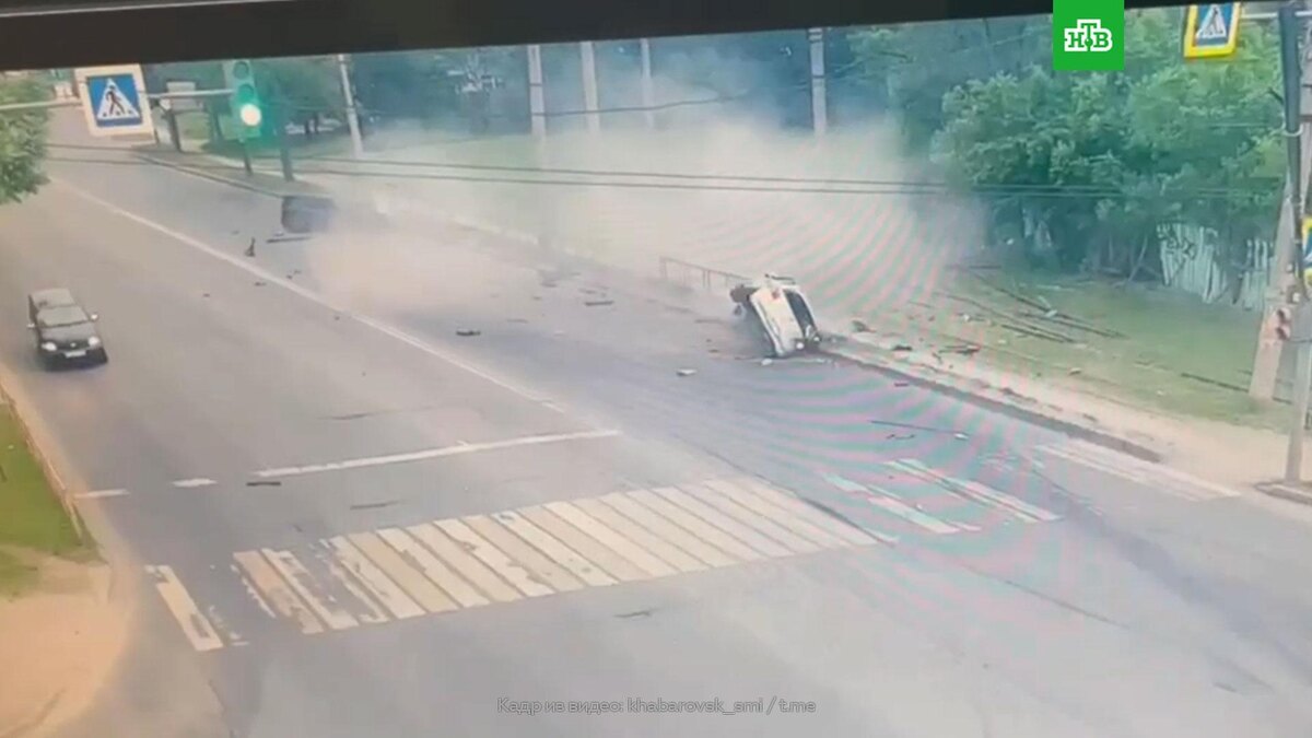 [ Смотреть видео на сайте НТВ ] В Хабаровске произошло жуткое ДТП — водителю легковушки буквально оторвало голову после столкновения с другой машиной и забором. Этот момент попал на видео. На кадрах видно, как на перекрестке поворачивает Toyota Vitz. В этот момент в нее на огромной скорости влетает кроссовер Mitsubishi Airtrek. Удар был такой силы, что «Тойоту» буквально разметало по проезжей части, бросило в забор. Водителю машины оторвало голову. Водитель Mitsubishi получил тяжелые травмы, он в больнице. [ Смотреть видео на сайте НТВ ]