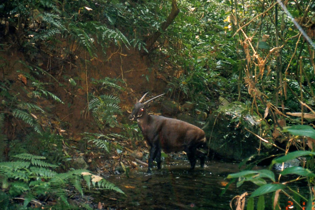 Привет, мои дорогие любители необычной земной фауны. Мне трудно представить чувство учёного, который проверяя свою фотоловушку увидел кадр, который вы видите ниже. Я сам в своих съёмках часто использую фотоловушки, чтобы выследить зверя, и каждый раз радуюсь, когда вижу кого-то достаточно редкого. А тут кадры зверя настолько редкого, что его только открыли в 1992 году! И то, это открытие могло бы и не состояться, если бы учёные не обнаружили в доме одного из местных жителей необычный череп с рогами. И уже зная, что в этих лесах водится неизвестный науке вид, устроили его поиски. Случилось это в северо-западном Вьетнаме. Через некоторое время учёным удалось получить фото этого замечательного животного на фотоловушку. Это была настоящая сенсация - учёные не верили, что в конце двадцатого века ещё остались неоткрытыми крупные виды копытных! Животному дали имя "саола" (сао ла - на местном диалекте означает прямые рога), ну а научное видовое имя Pseudoryx nghetinhensis. Псевдорикс – означ