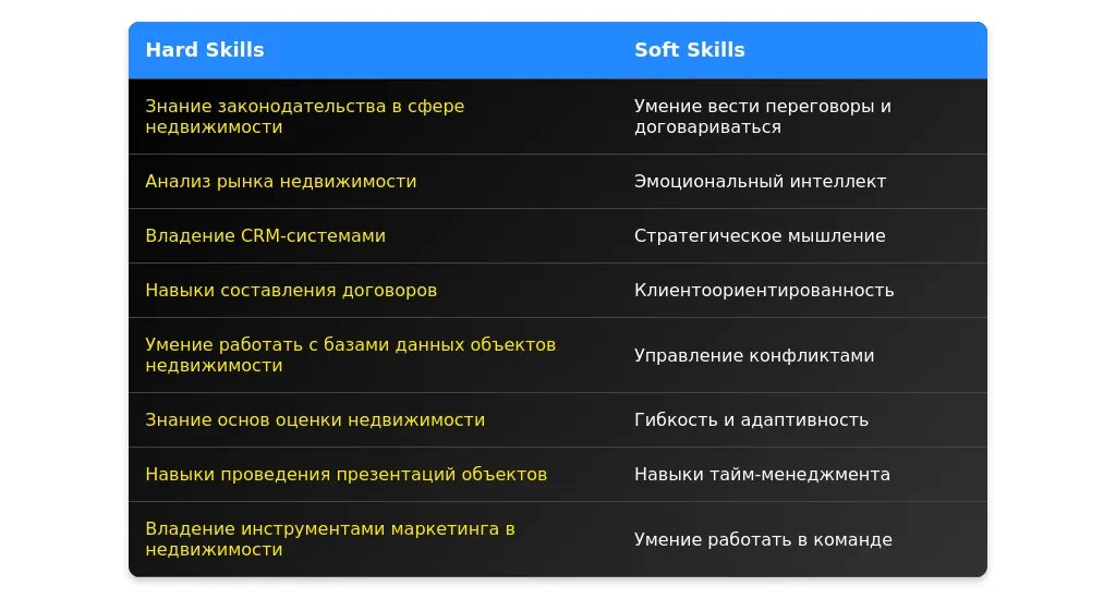 После адаптации: Ведение переговоров с агентствами недвижимости, работа в CRM-системах, знание законодательства в сфере недвижимости.
