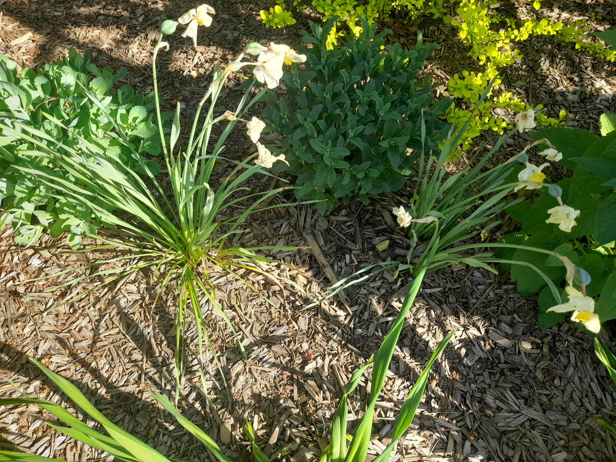 На прошлой неделе я была в недельном отпуске. На даче всегда есть чем заняться, особенно в саду. Сегодня расскажу чем занималась. В саду уже давно все цветет и начались первые обрезки. Убрала соцветия у нарциссов, тюльпанов, подстригла арабис, вырвала бруннеру. Бруннера очень активно разрастается и я стараюсь держать ее в рамках. Прошлась по саду и погоняла муравьев. Где вижу следы их деятельности, сыплю средство с названием Великий воин. Когда-то купила в ФП, отлично помогает. Муравьи моментально убегают, но за пределы участка спешат не все. Занялась пересадками. Жаркие дни не самое лучшее время для пересадок, но откладывать некуда. Убрала из-под огромной почвопокровной розы кустовой клематис, которому уже 3 года. Все это время он выгонял ботву и ни разу не цвел. Выкопала, поделила и посадила в солнечный розарий, где ему должно понравится. Древовидный пион в этом году стал гигантских размеров. Своей зеленой массой он полностью закрыл ирис сибирский. Его срочно нужно было спаса
