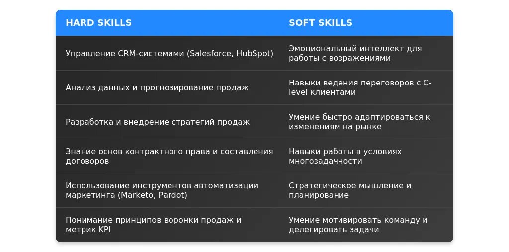 3. Баланс навыков: Управление командой и личное участие в заключении крупных сделок.